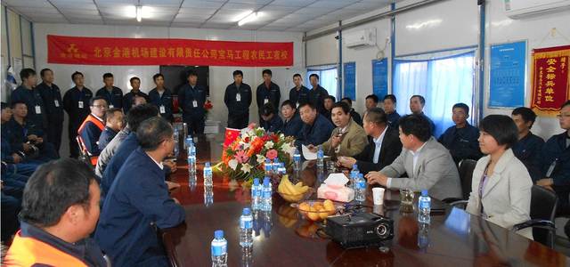 10日上午10時(shí)整,全體員工在王金福、王碩等項(xiàng)目領(lǐng)導(dǎo)的帶領(lǐng)下,列隊(duì)迎接譚董事長(zhǎng)、劉總和李總一行。譚董事長(zhǎng)和劉總首先對(duì)十一長(zhǎng)假期間仍然奮戰(zhàn)在第一線上的全體員工致以節(jié)日的問(wèn)候。并與項(xiàng)目工作人員合影留念,隨后,領(lǐng)導(dǎo)們參觀了項(xiàng)目部各個(gè)部門(mén),與每一位員工進(jìn)行了親切的交談,詢問(wèn)了員工的飲食起居和工作情況,對(duì)項(xiàng)目部的管理運(yùn)行模式給予了充分的肯定。