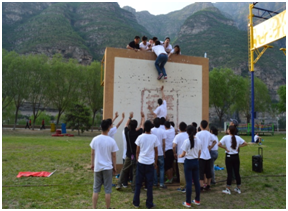 4、翻越畢業(yè)墻:以考驗(yàn)團(tuán)隊(duì)凝聚力、團(tuán)隊(duì)配合與溝通、團(tuán)隊(duì)責(zé)任感為主題。在特定的時(shí)間內(nèi),不借助任何輔助道具幫助的情況下,所有隊(duì)員均需成功翻越過一面四米二高的墻體,因此如何在有效的時(shí)間內(nèi)調(diào)整配置、統(tǒng)籌安排好全隊(duì)隊(duì)員,如何使全員在沒有任何外力保護(hù)措施下充分信任隊(duì)友,如何快速有效的制定一套有效的方案是此項(xiàng)目需要解決的核心問題。通過成功翻越畢業(yè)墻,使在場的每個(gè)隊(duì)員都體會(huì)到了在困難面前,一個(gè)人做不到的事情,通過精誠合作,依靠整個(gè)團(tuán)隊(duì)的力量是可以完成的。