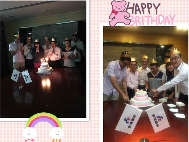 在公司領(lǐng)導(dǎo)的深情祝福后,生日會達(dá)到了高潮環(huán)節(jié):隨著生日快樂歌聲的響起,蛋糕上的蠟燭被一一點燃,壽星們紛紛閉上雙眼,許下了每個人心中的生日愿望。溫馨與喜悅包圍著會場上的每個人,大家都為自己身處金港建設(shè)這個大家庭中感到幸福與自豪!